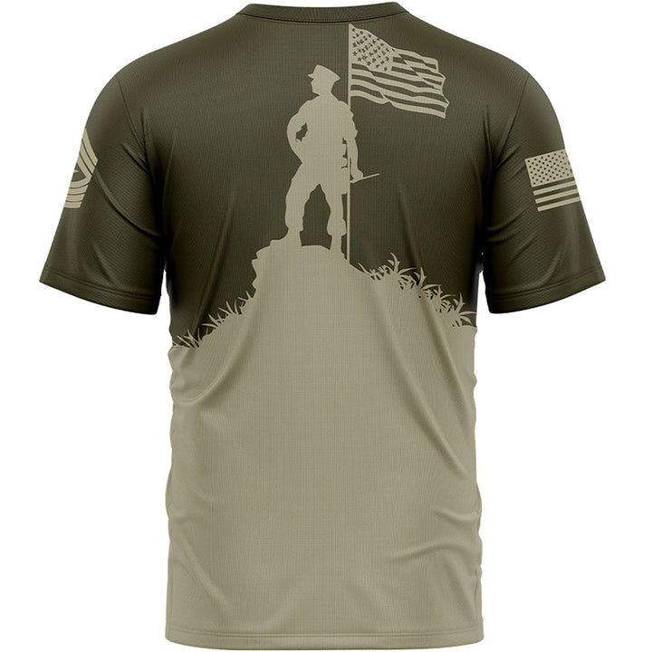 Custom Olive American Flag Military Rank Name Independence Day T-Shirt