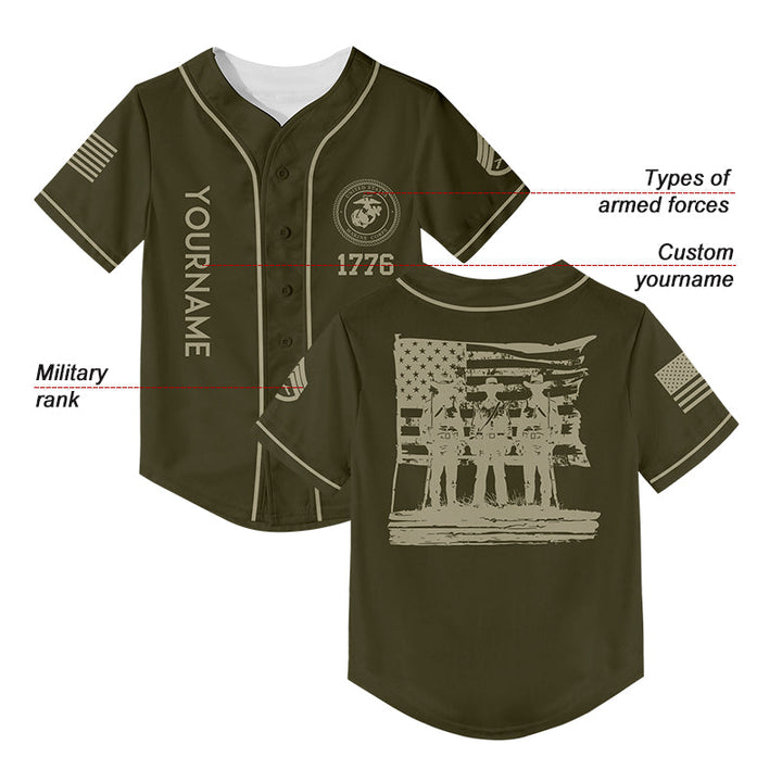 Custom Olive American History Flag Military Rank Name Independence Day Baseball Jersey