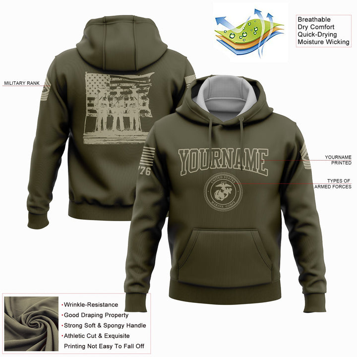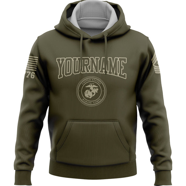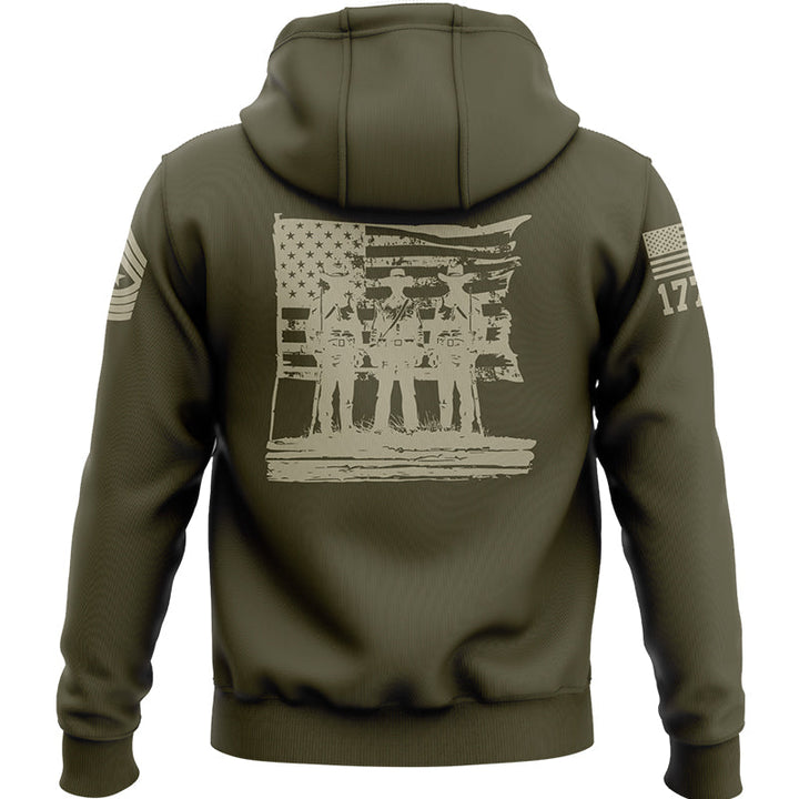 Custom Olive American History Flag Military Rank Name Independence Day Hoodie | Father's Day Gifts
