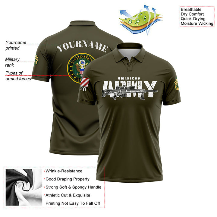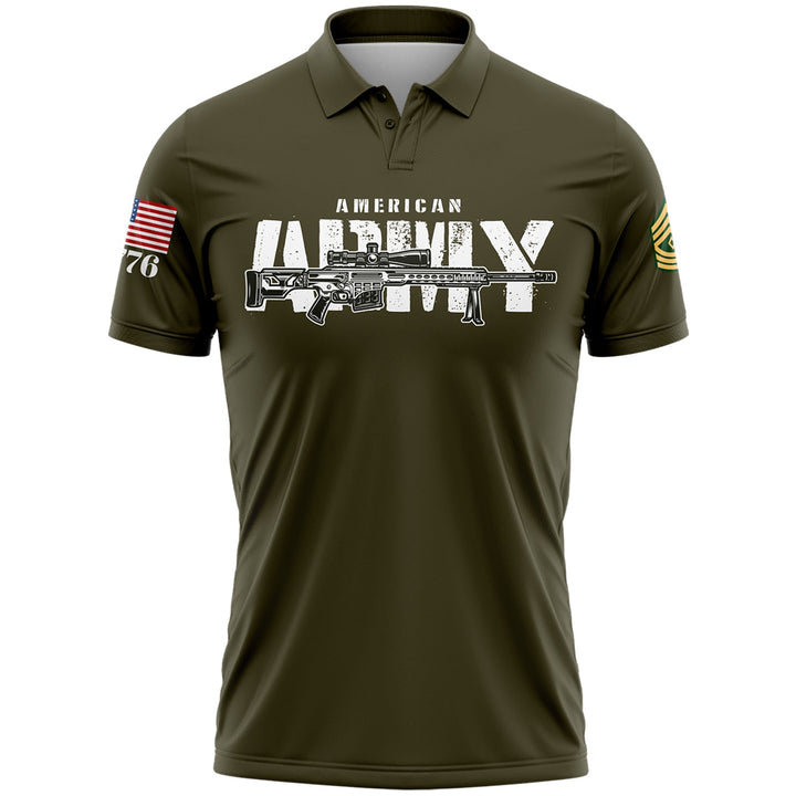 Custom Olive Barrett 1776 American Flag U.S Army Military Rank Name Golf Polo Shirt