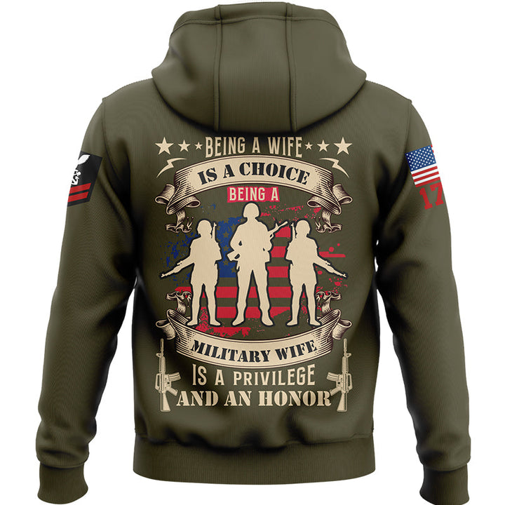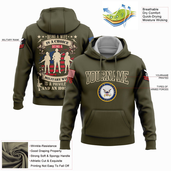 Custom Olive Being A Wife Is A Choice Being A Military Wife 1776 Flag U.S Navy Military Rank Name Veterans Day Hoodie | Father's Day Gifts