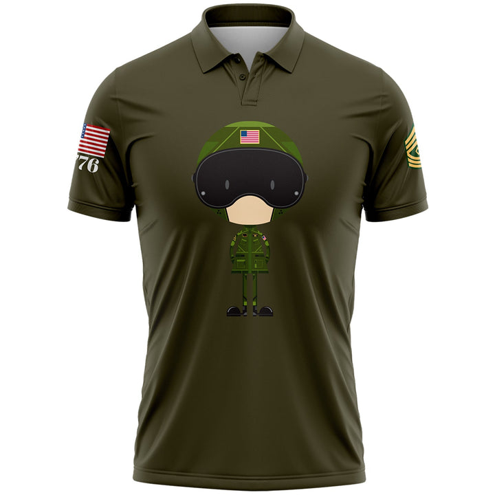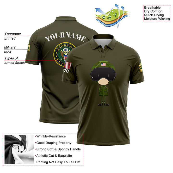 Custom Olive Cartoon 1776 U.S Army Military Rank Name Golf Polo Shirt