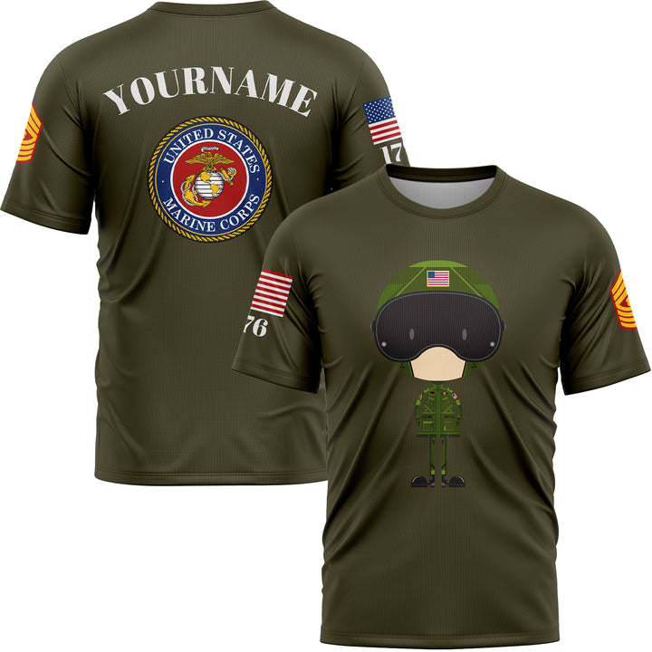 Custom Olive Cartoon 1776 U.S Marine Corps Military Rank Name T-Shirt