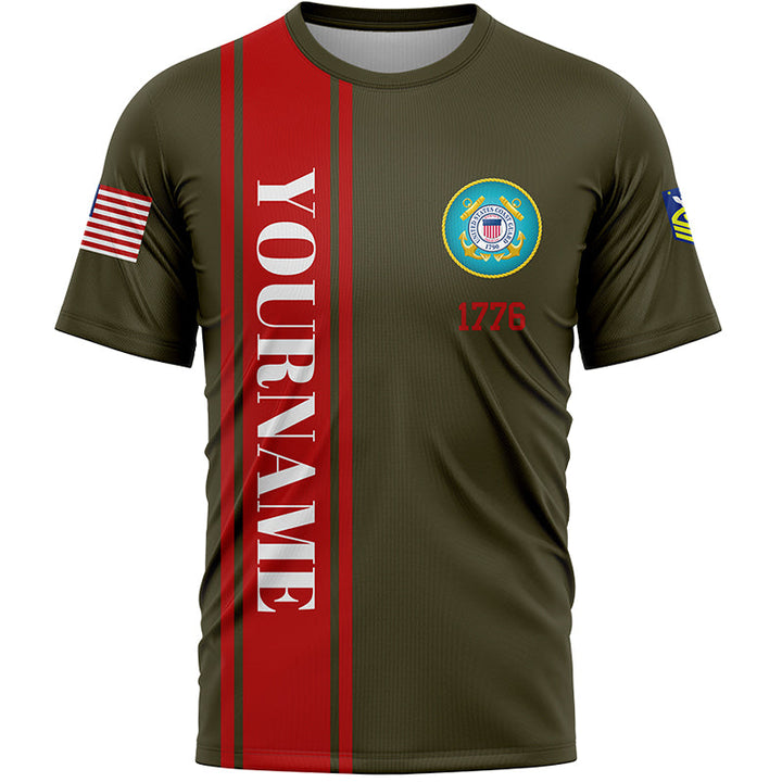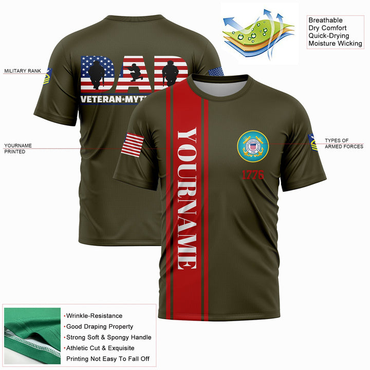 Custom Olive Dad Veteran Myth Legend 1776 Flag U.S Coast Guard Military Rank Name Veterans Day T-Shirt | Father's Day Gifts