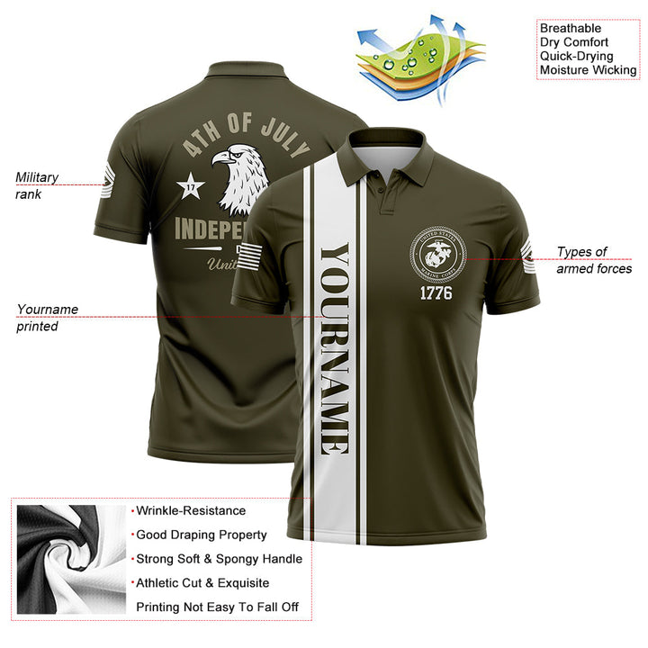 Custom Olive Eagle 4th Of July Military Rank Name Independence Day Golf Polo Shirt