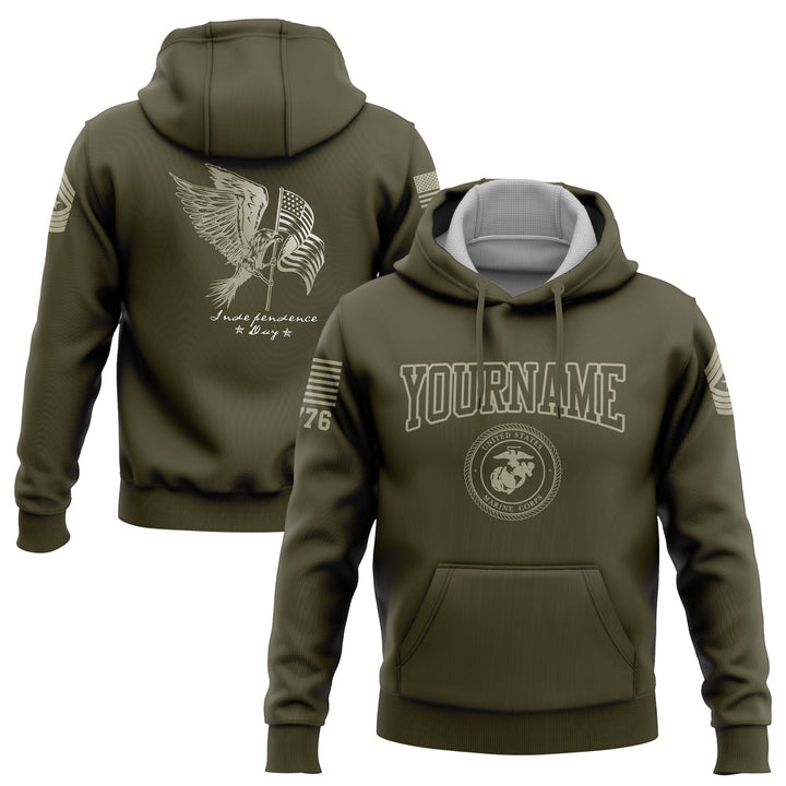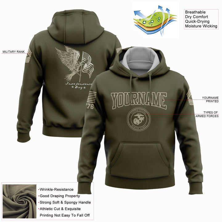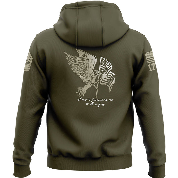 Custom Olive Eagle American Flag Military Rank Name Independence Day Hoodie | Father's Day Gifts