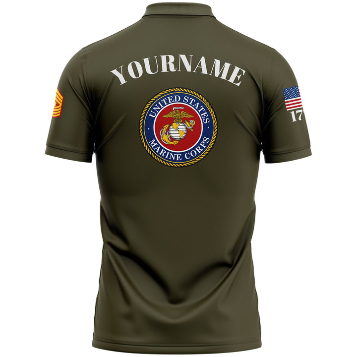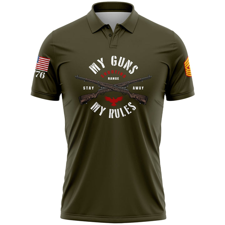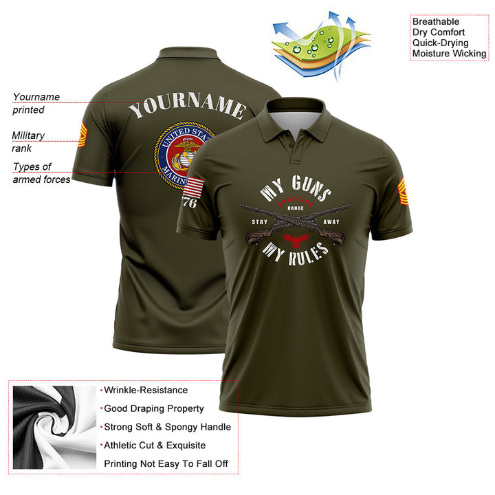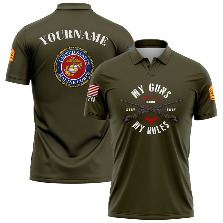 Custom Olive Eagle My Rules 1776 U.S Marine Corps Military Rank Name Golf Polo Shirt