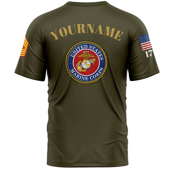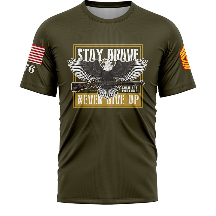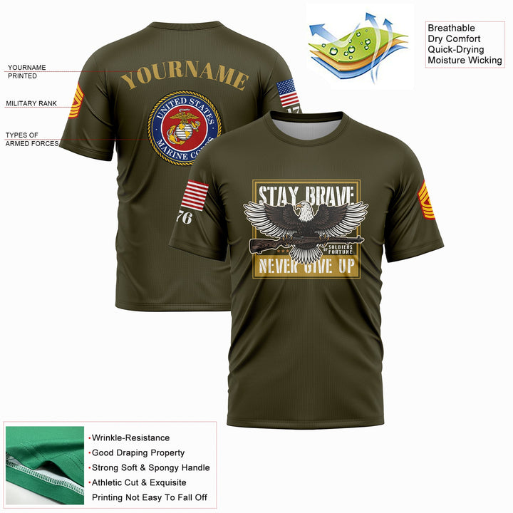 Custom Olive Eagle Stay Brave Never Give Up 1776 U.S Marine Corps Military Rank Name T-Shirt