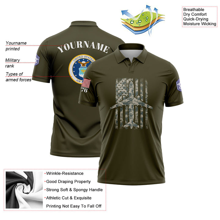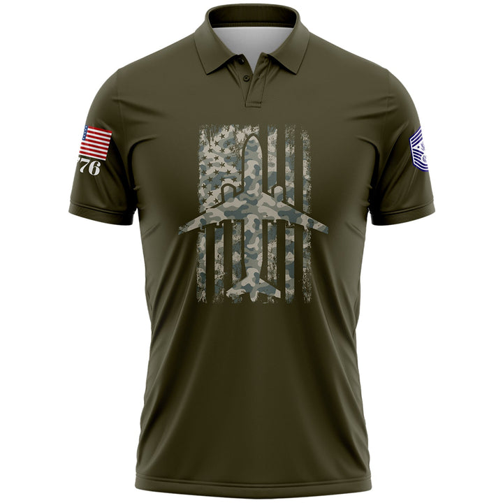 Custom Olive Fighter 1776 American Flag U.S Air Force Military Rank Name Golf Polo Shirt