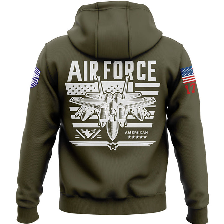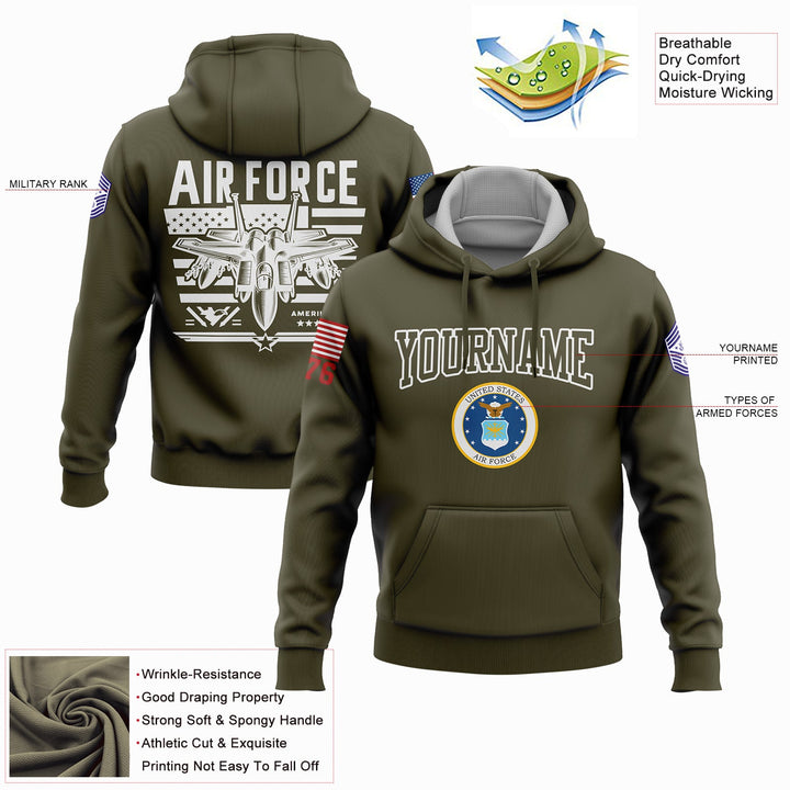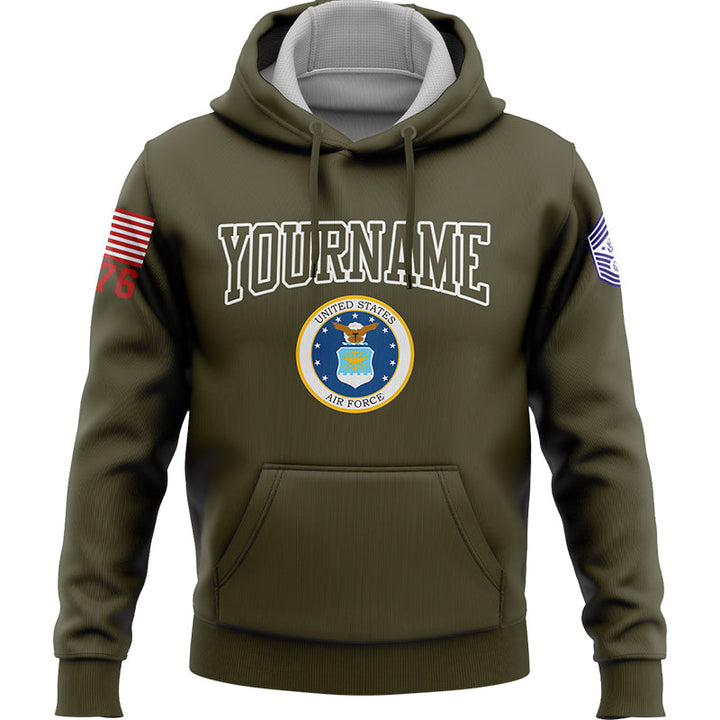 Custom Olive Fighter 1776 American Flag U.S Air Force Military Rank Name Hoodie