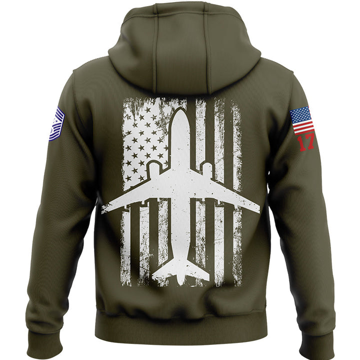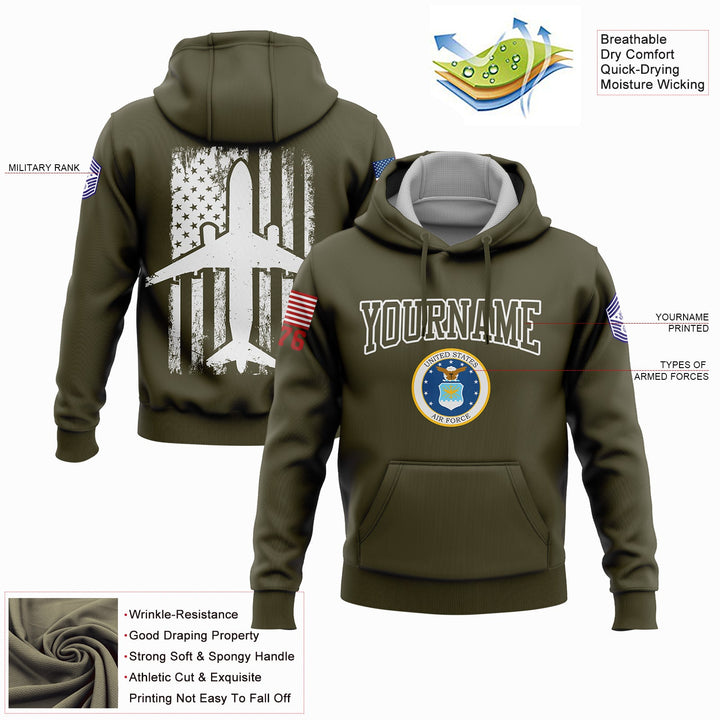 Custom Olive Fighter 1776 American Flag U.S Air Force Military Rank Name Hoodie