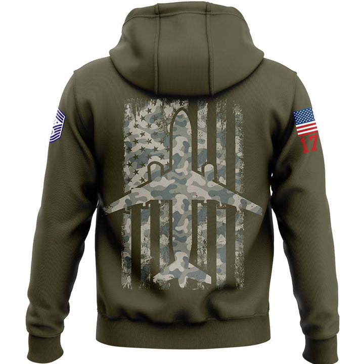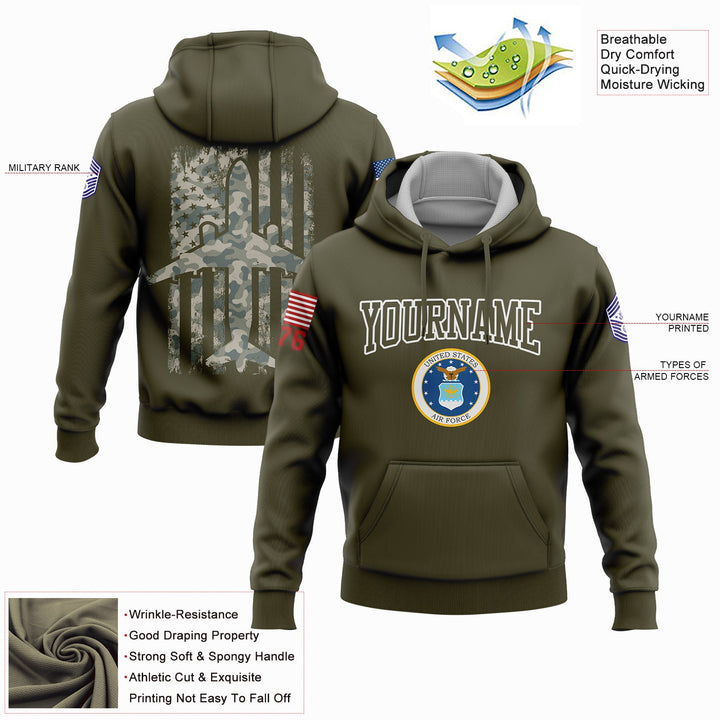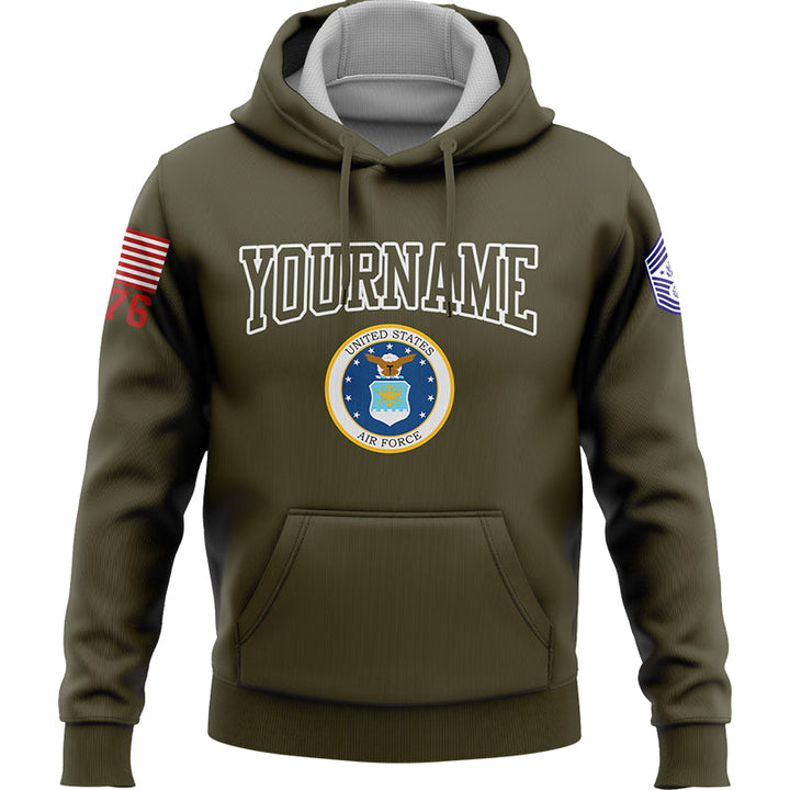Custom Olive Fighter 1776 American Flag U.S Air Force Military Rank Name Hoodie