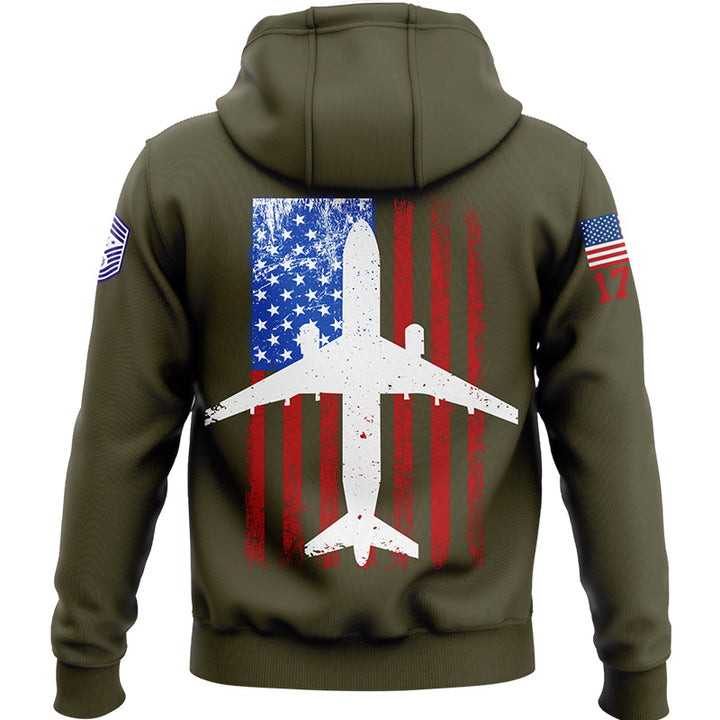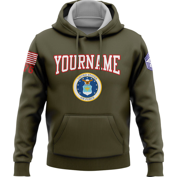 Custom Olive Fighter 1776 American Flag U.S Air Force Military Rank Name Hoodie