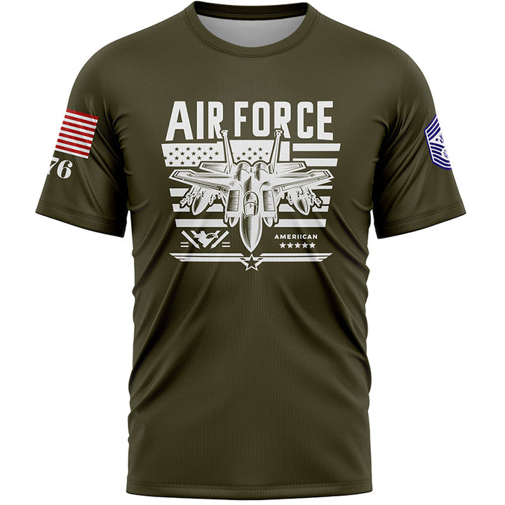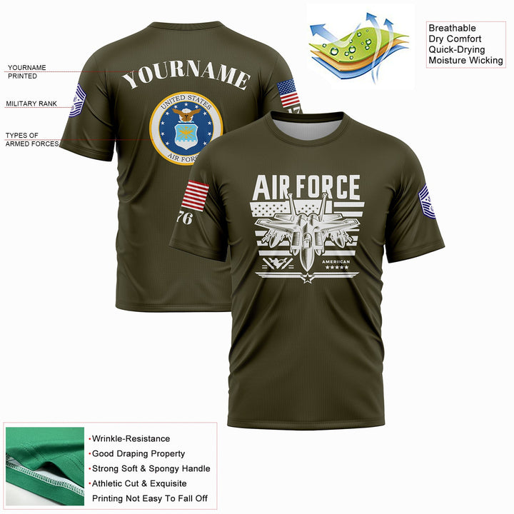 Custom Olive Fighter 1776 American Flag U.S Air Force Military Rank Name T-Shirt