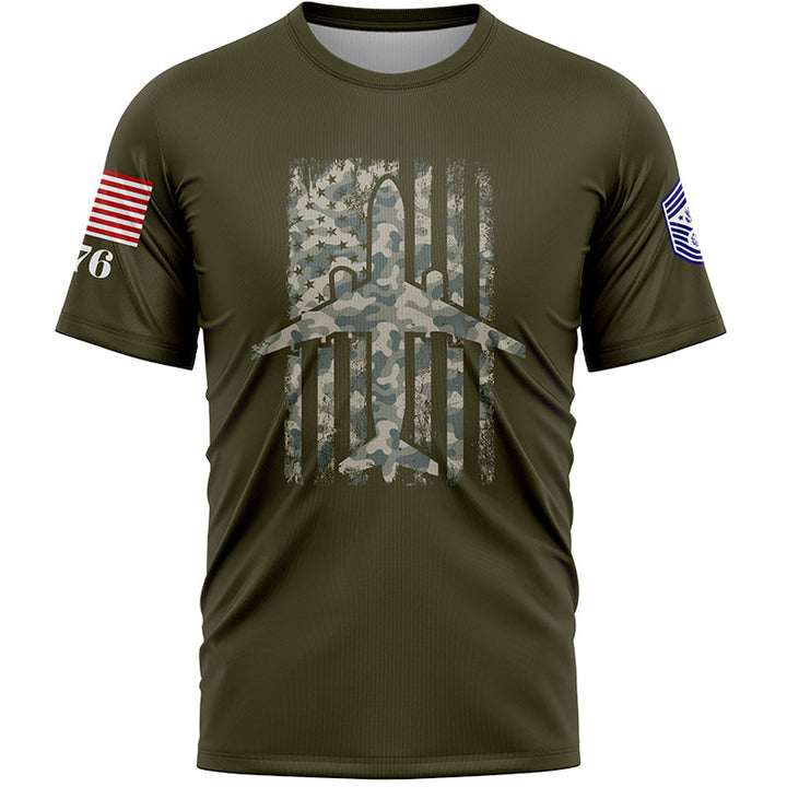 Custom Olive Fighter 1776 American Flag U.S Air Force Military Rank Name T-Shirt