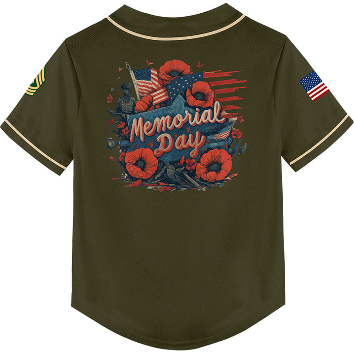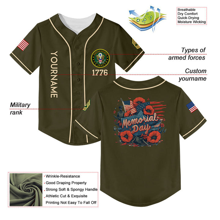 Custom Olive Flower 1776 American Flag U.S Army Military Rank Name Memorial Day Baseball Jersey