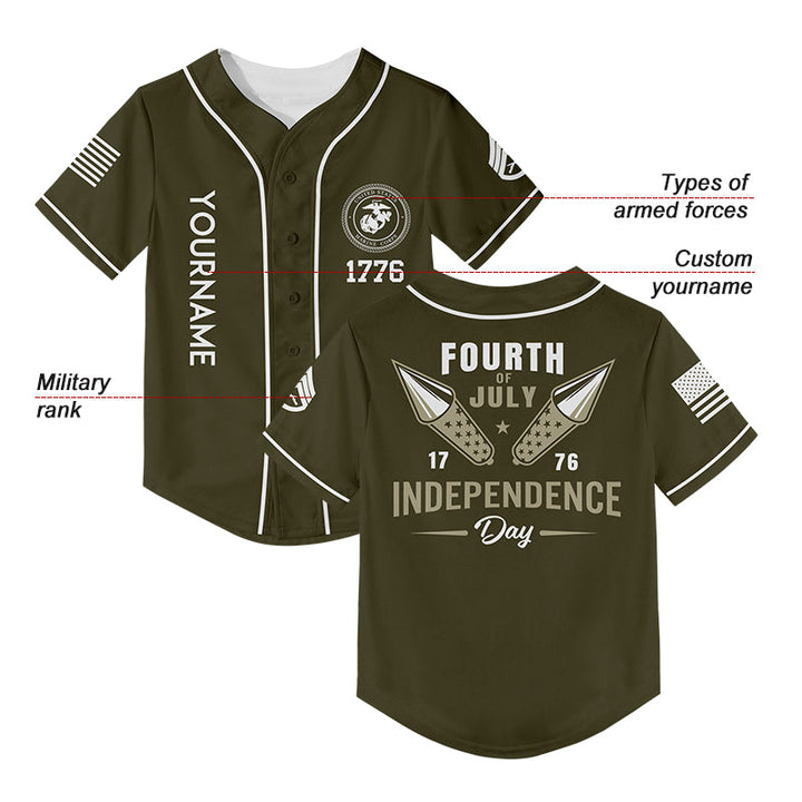 Custom Olive Fourth Of July Military Rank Name Independence Day Baseball Jersey