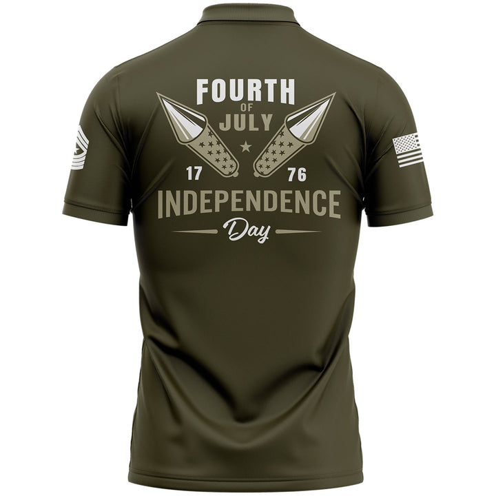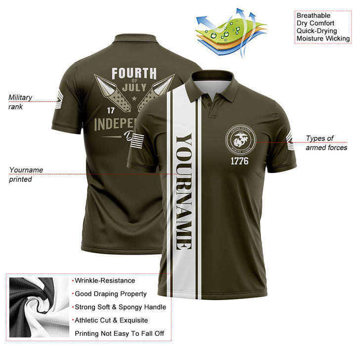 Custom Olive Fourth Of July Military Rank Name Independence Day Golf Polo Shirt