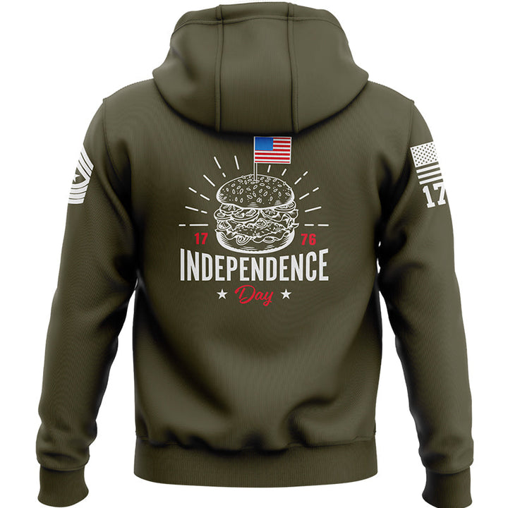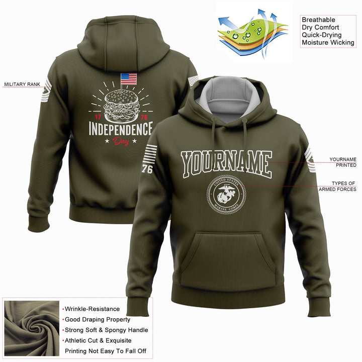 Custom Olive Hamburger American Flag Military Rank Name Independence Day Hoodie | Father's Day Gifts