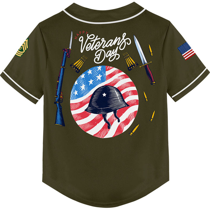 Custom Olive Helmet 1776 Flag U.S Army Military Rank Name Veterans Day Baseball Jersey | Father's Day Gifts