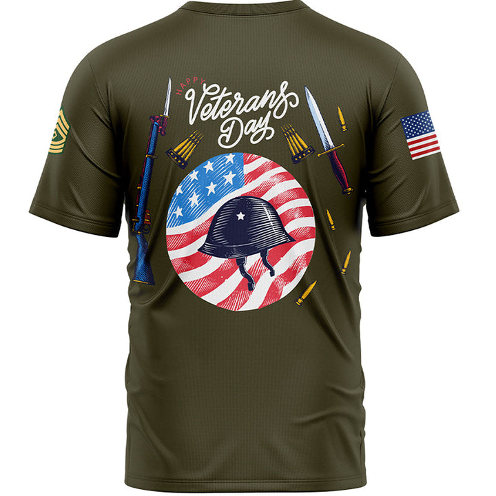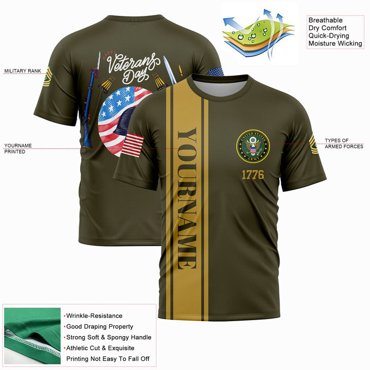 Custom Olive Helmet 1776 Flag U.S Army Military Rank Name Veterans Day T-Shirt | Father's Day Gifts