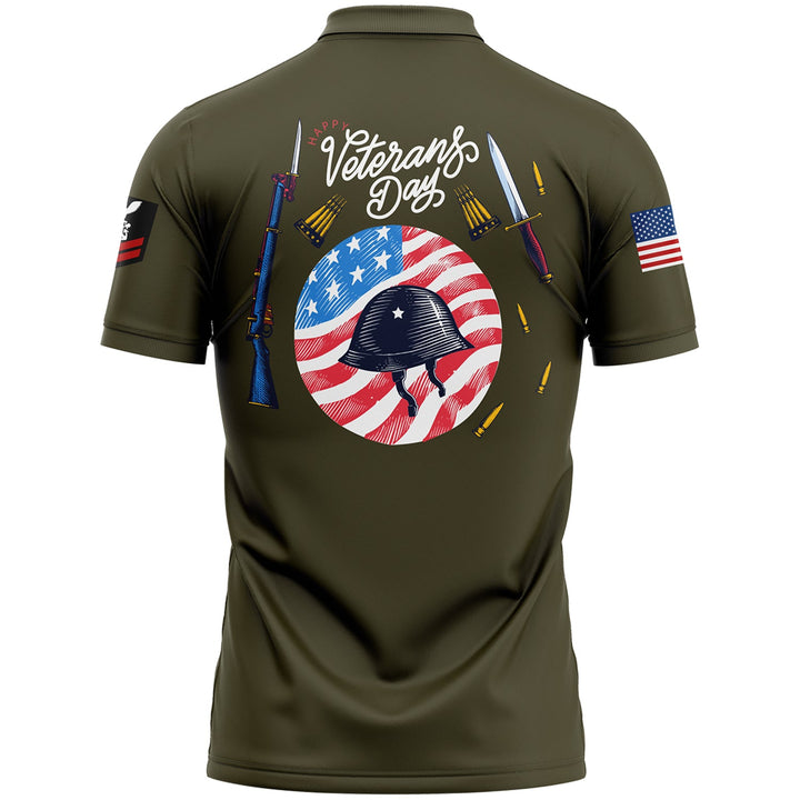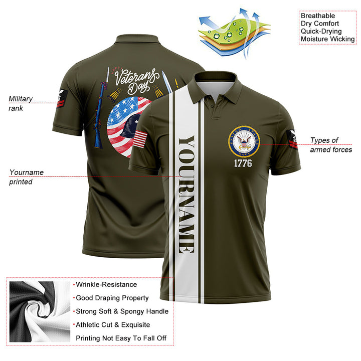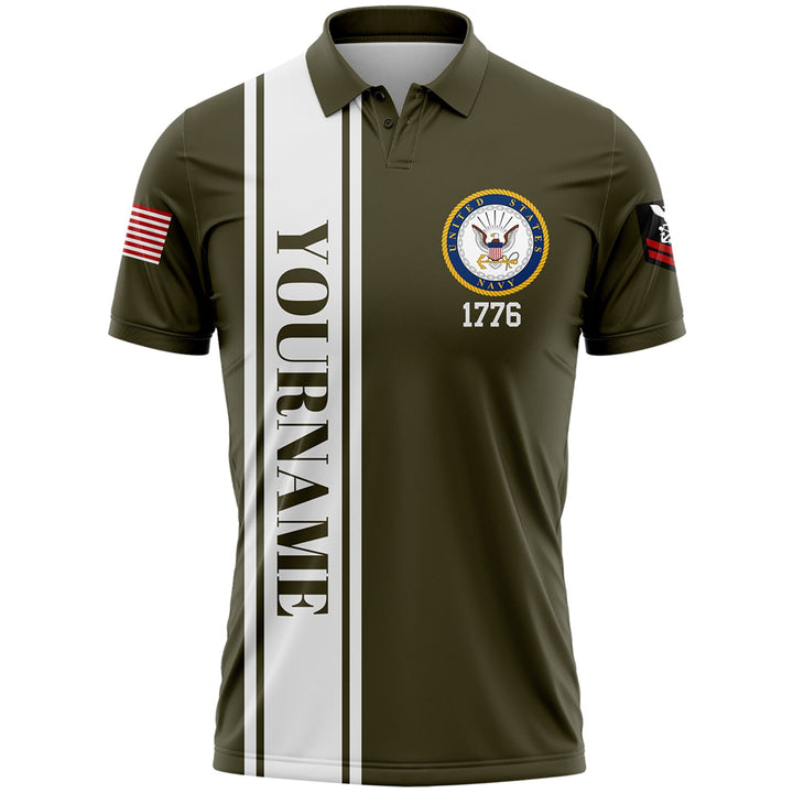 Custom Olive Helmet 1776 Flag U.S Navy Military Rank Name Veterans Day Golf Polo Shirt | Father's Day Gifts