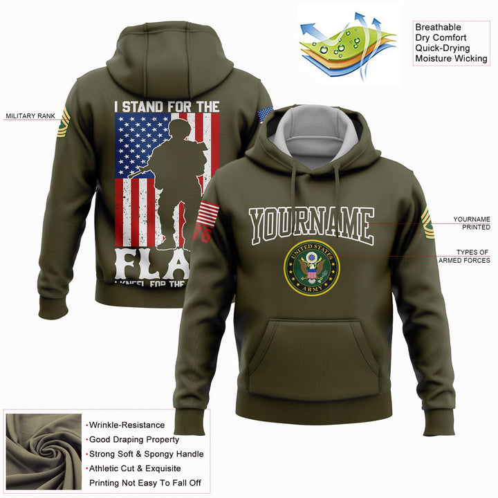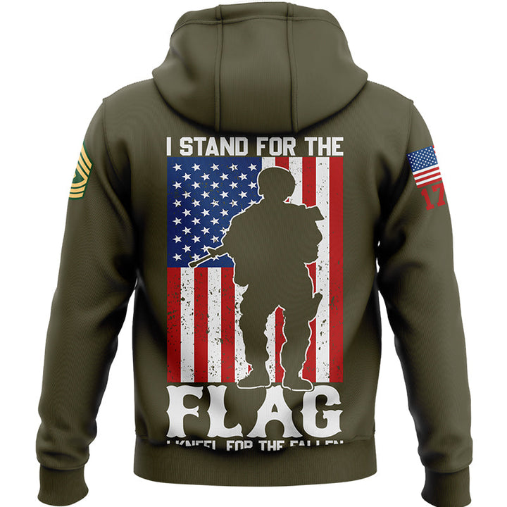 Custom Olive I Stand For Flag I Kneel For The Fallen 1776 Army Military Rank Name Veterans Day Hoodie | Father's Day Gifts