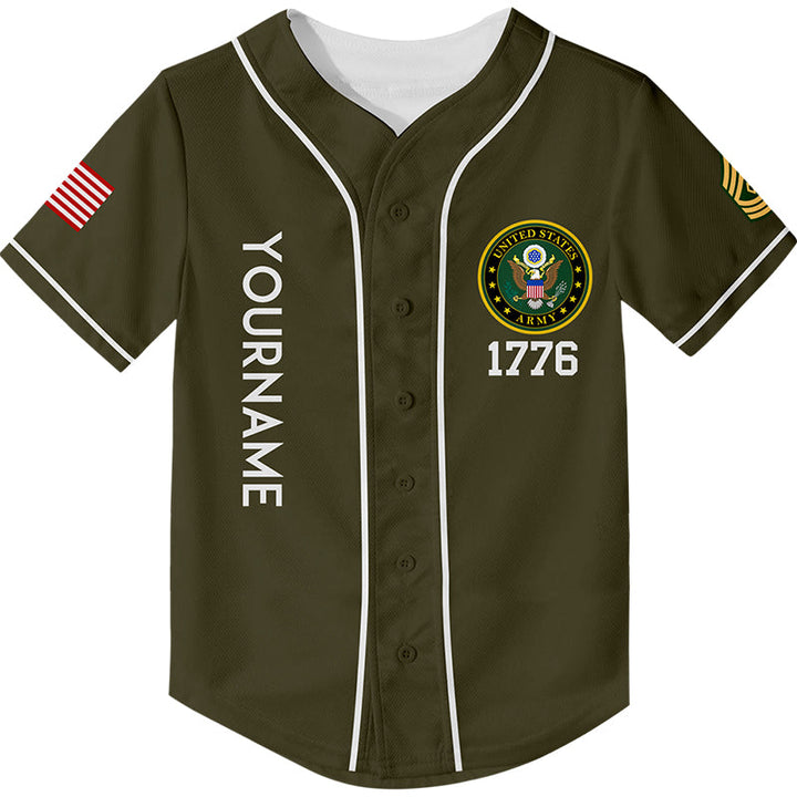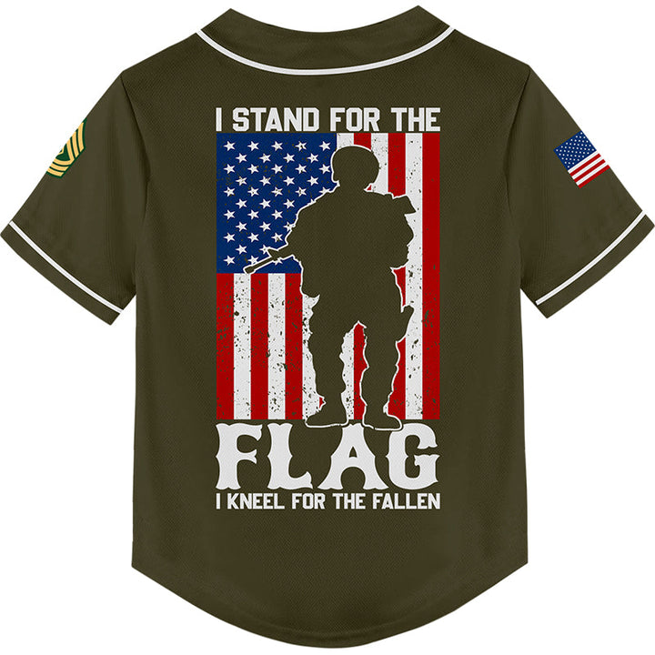 Custom Olive I Stand For Flag I Kneel For The Fallen 1776 Military Rank Name Veterans Day Baseball Jersey