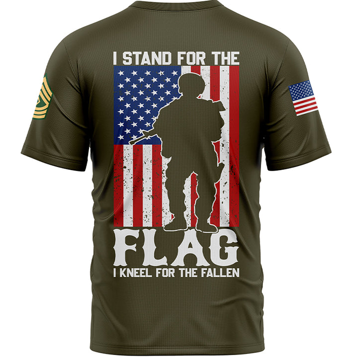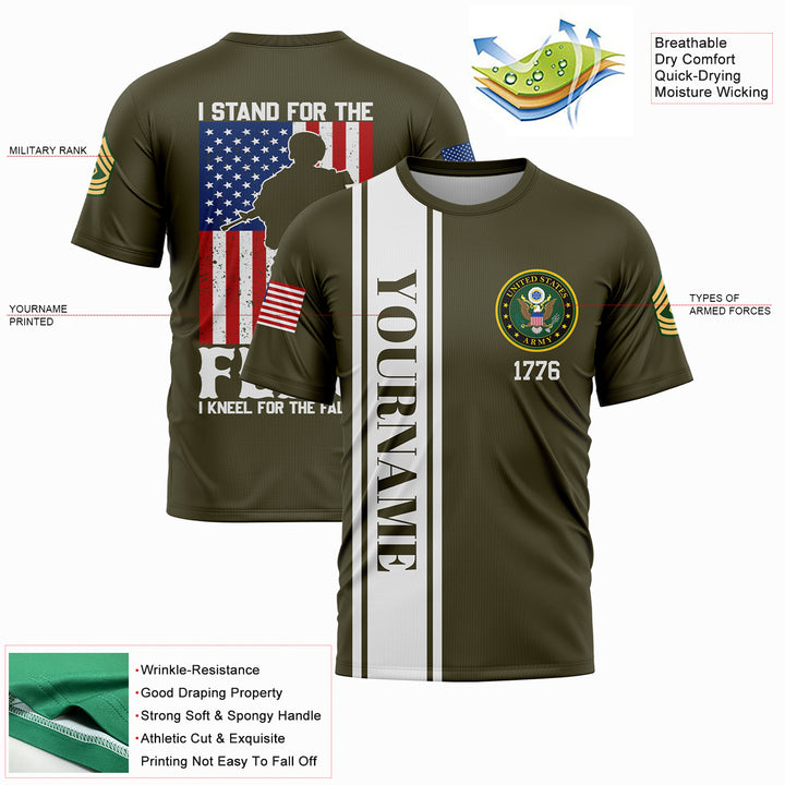Custom Olive I Stand For Flag I Kneel For The Fallen 1776 Military Rank Name Veterans Day T-Shirt