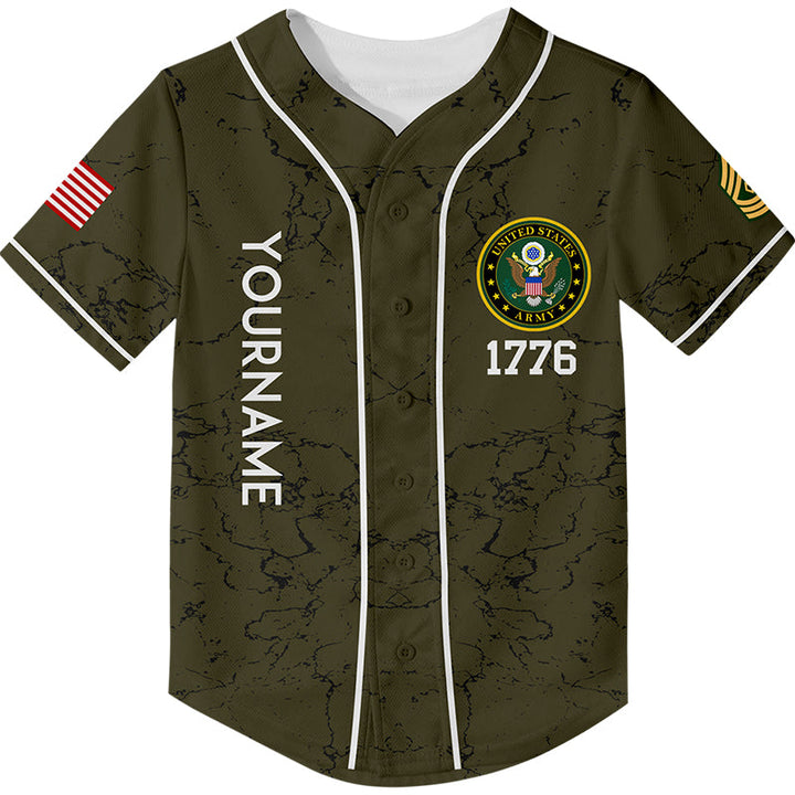 Custom Olive I'm A Dad Grandpa 1776 Flag U.S Army Military Rank Name Veterans Day Baseball Jersey | Father's Day Gifts