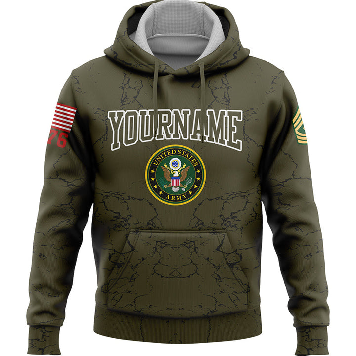 Custom Olive I'm A Dad Grandpa 1776 Flag U.S Army Military Rank Name Veterans Day Hoodie | Father's Day Gifts