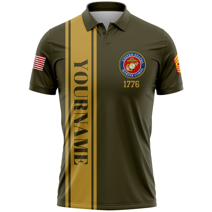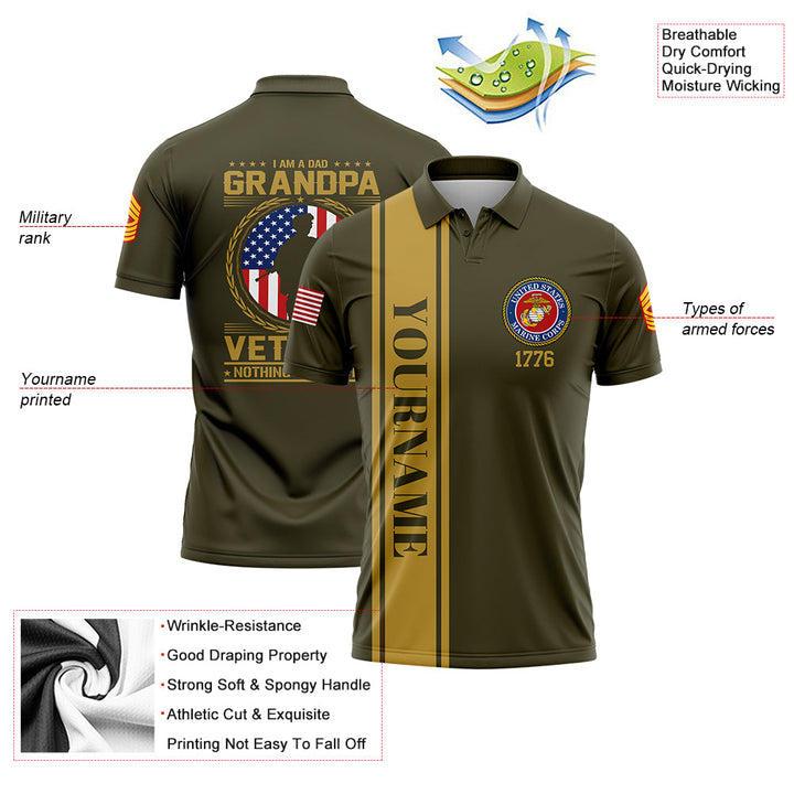 Custom Olive I'M A Dad Grandpa 1776 Flag U.S Marine Corps Military Rank Name Veterans Day Golf Polo Shirt | Father's Day Gift