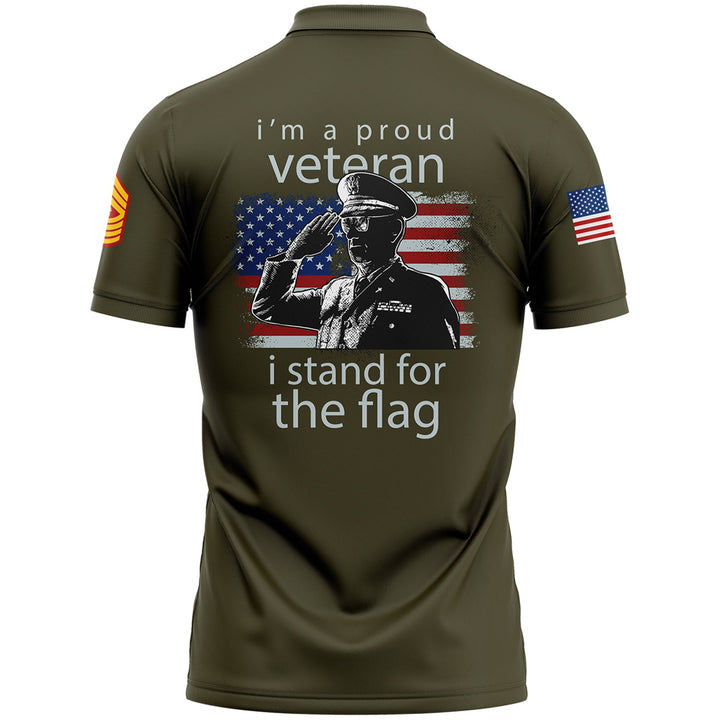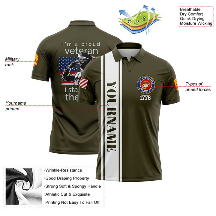 Custom Olive I'm A Proud Veteran I Stand For The Flag 1776 Flag U.S Marine Corps Military Rank Name Veterans Day Golf Polo Shirt | Father's Day Gifts