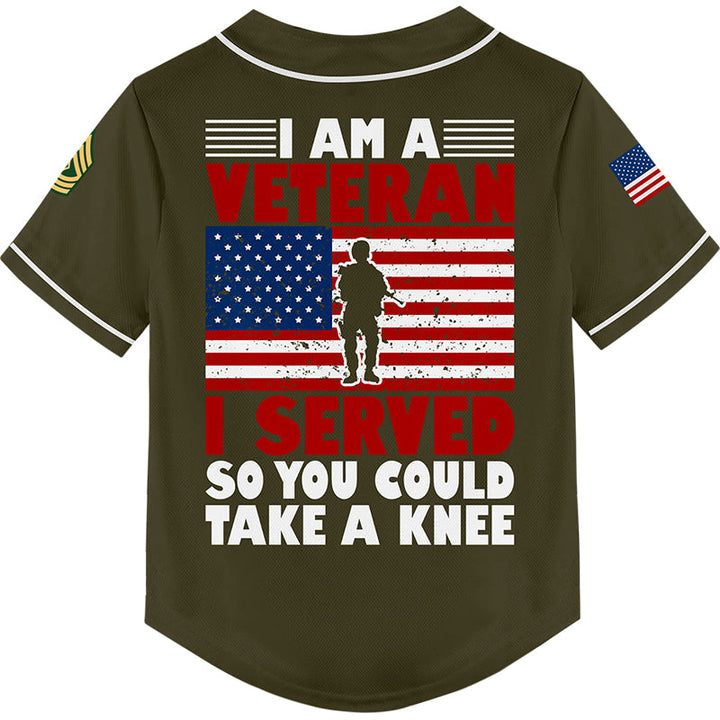 Custom Olive I'M A Veteran I Served So You Could Take A Knee 1776 Flag Military Rank Name Veterans Day Baseball Jersey