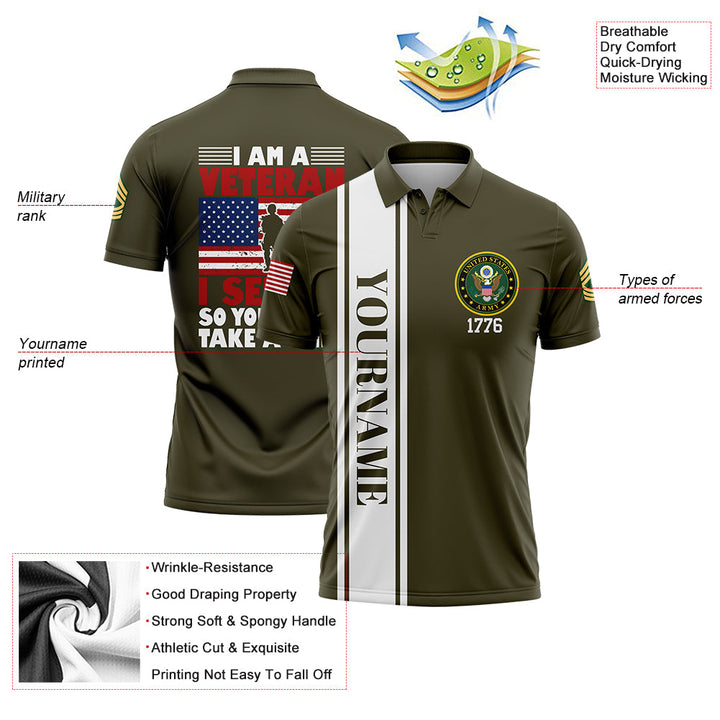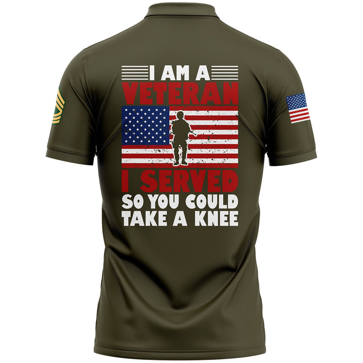 Custom Olive I'M A Veteran I Served So You Could Take A Knee 1776 Flag Military Rank Name Veterans Day Golf Polo Shirt