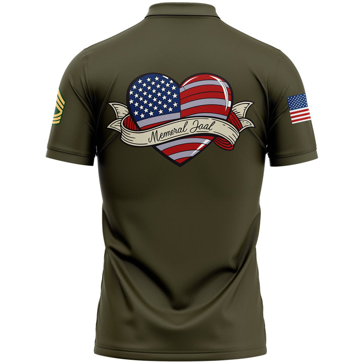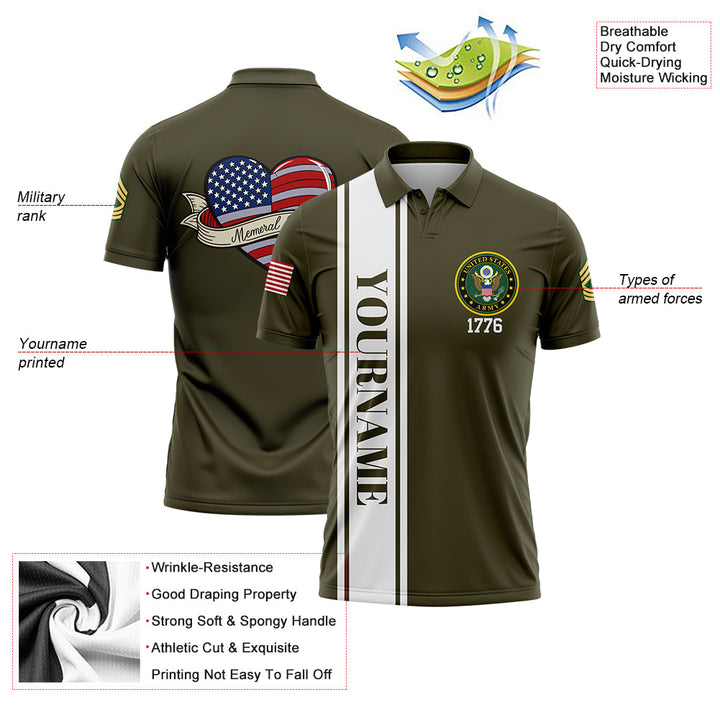 Custom Olive Love 1776 American Flag U.S Army Military Rank Name Memorial Day Golf Polo Shirt