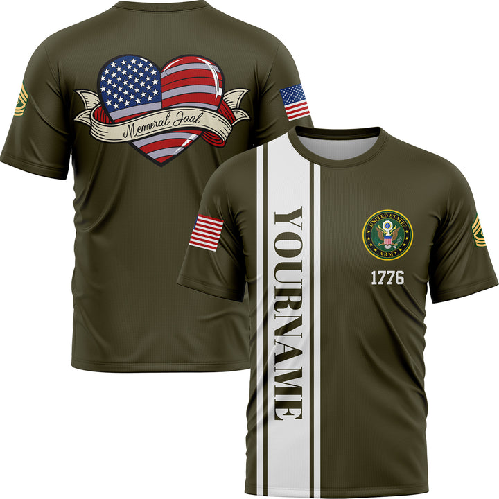 Custom Olive Love 1776 American Flag U.S Army Military Rank Name Memorial Day T-Shirt