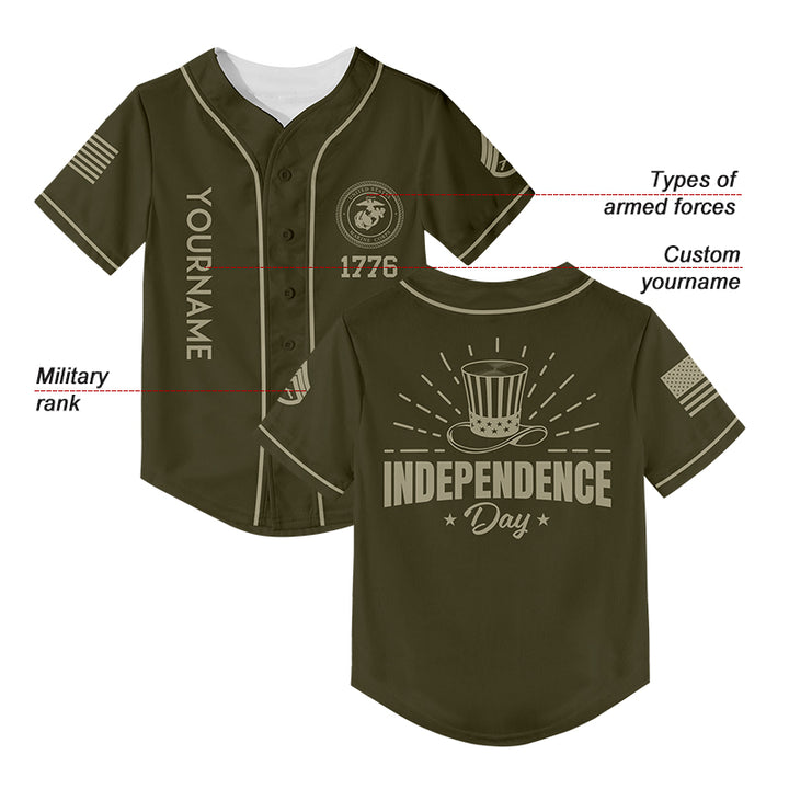 Custom Olive Magic Hat Military Rank Name Independence Day Baseball Jersey