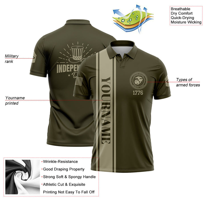 Custom Olive Magic Hat Military Rank Name Independence Day Golf Polo Shirt
