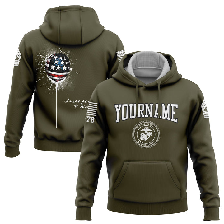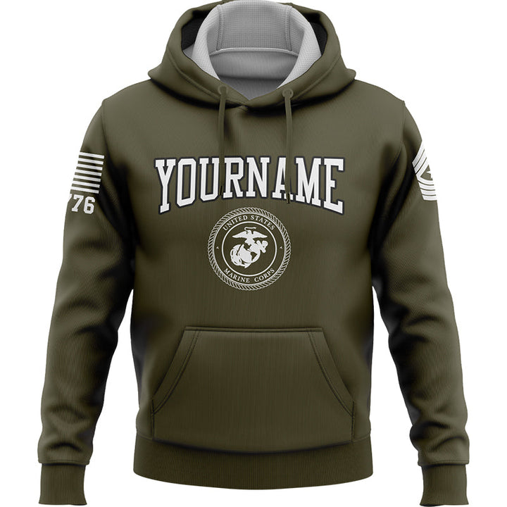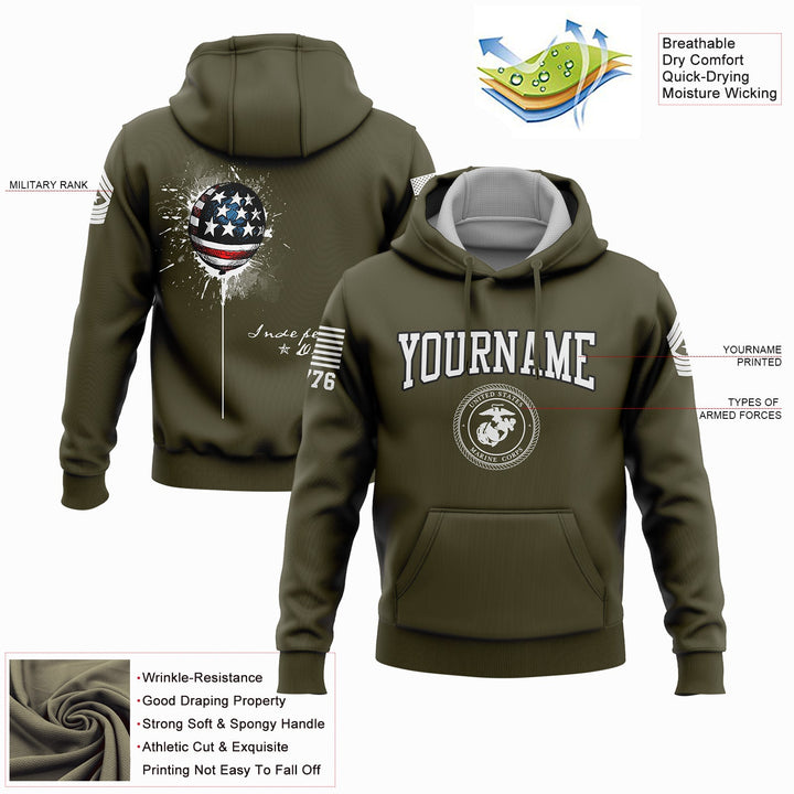 Custom Olive Military Rank Name Independence Day Hoodie | Father's Day Gifts