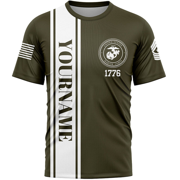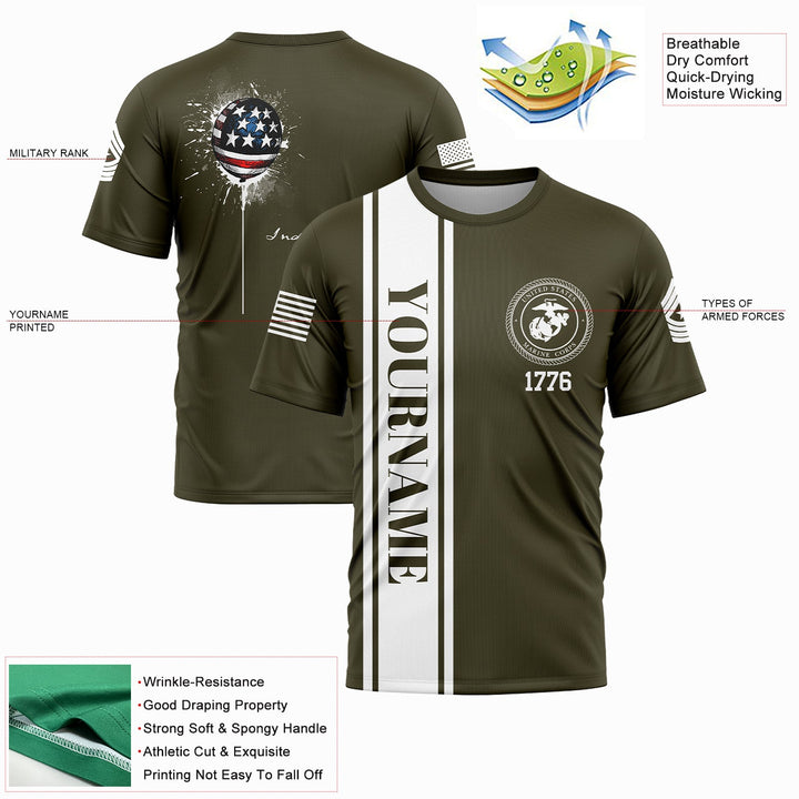 Custom Olive Military Rank Veteran Name Independence Day T-Shirt