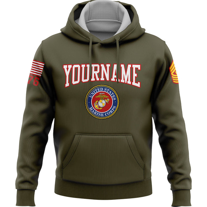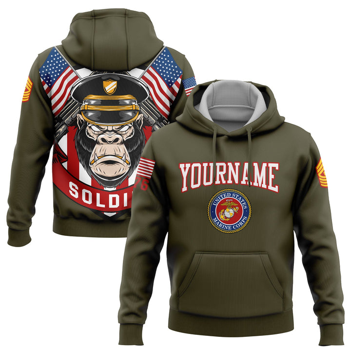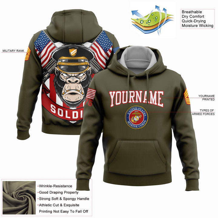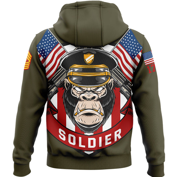 Custom Olive Orangutan Soldier 1776 American Flag U.S Marine Corps Military Rank Name Hoodie
