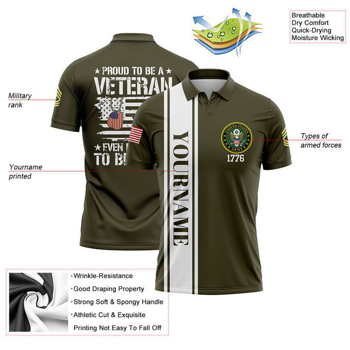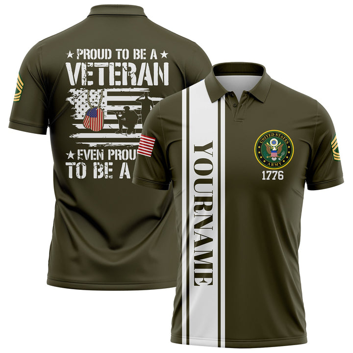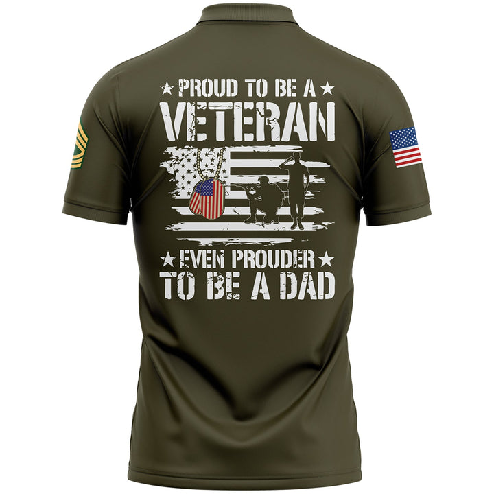 Custom Olive Proud To Be A Veteran Even Prouder To Be A Dad 1776 Flag U.S Army Military Rank Name Veterans Day Golf Polo Shirt | Father's Day Gifts