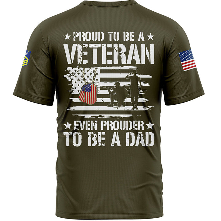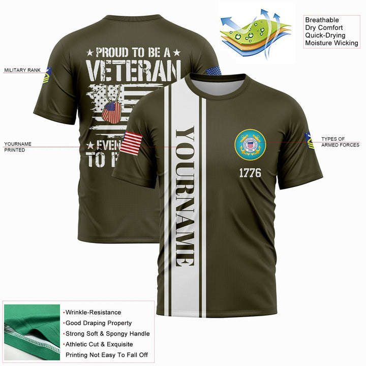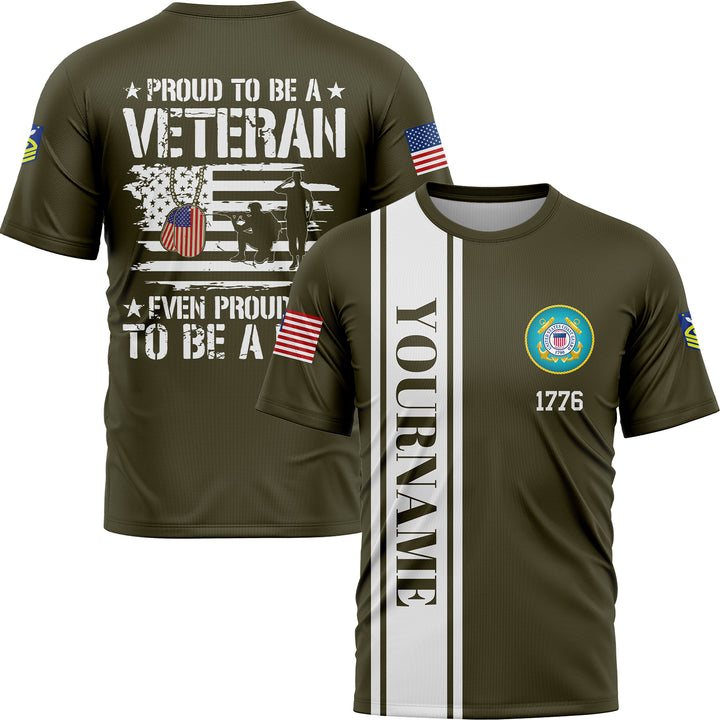Custom Olive Proud To Be A Veteran Even Prouder To Be A Dad 1776 Flag U.S Coast Guard Military Rank Name Veterans Day T-Shirt | Father's Day Gifts