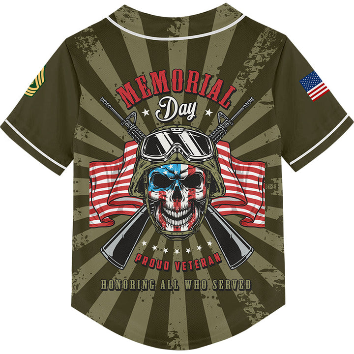 Custom Olive Proud Veteran Honoring All Who Served 1776 American Flag U.S Army Military Rank Name Memorial Day Baseball Jersey