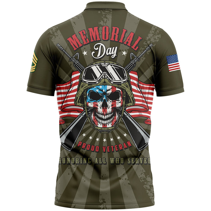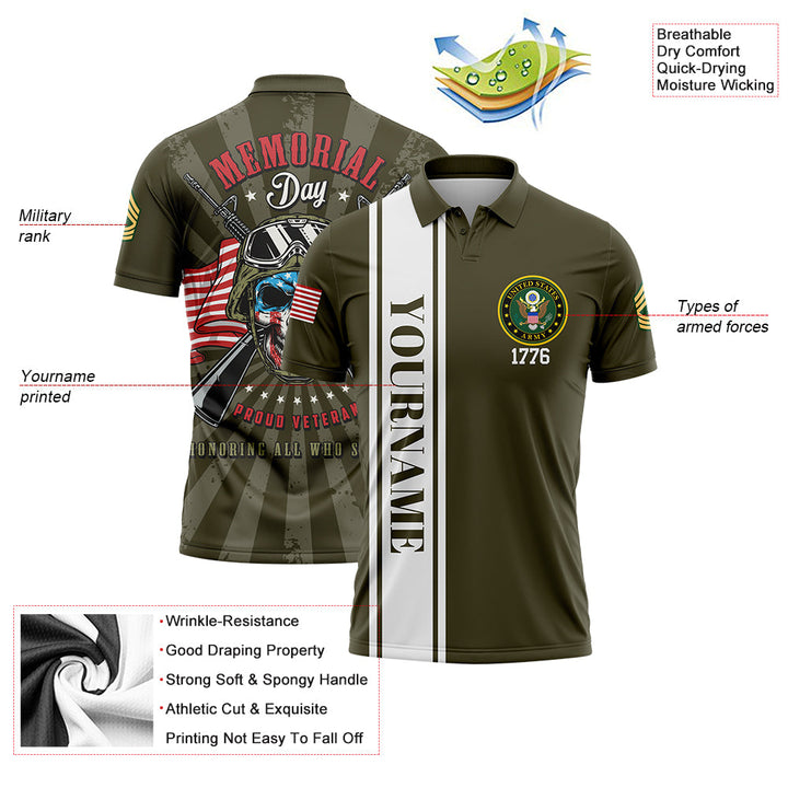 Custom Olive Proud Veteran Honoring All Who Served 1776 American Flag U.S Army Military Rank Name Memorial Day Golf Polo Shirt