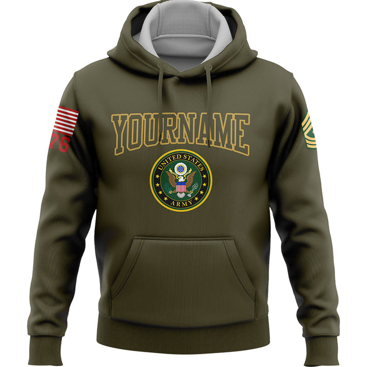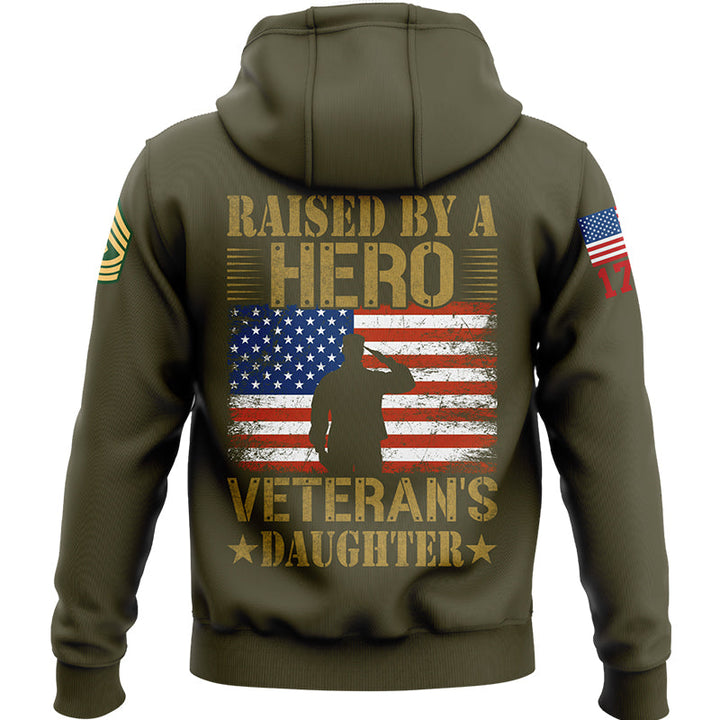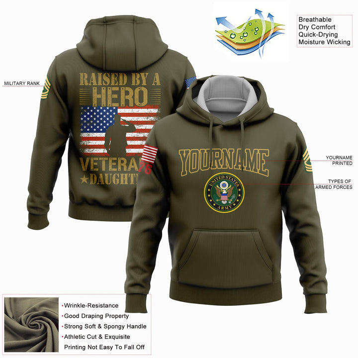 Custom Olive Raised By A Hero 1776 Flag U.S Army Military Rank Name Veterans Day Hoodie | Father's Day Gifts