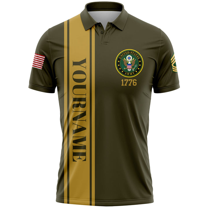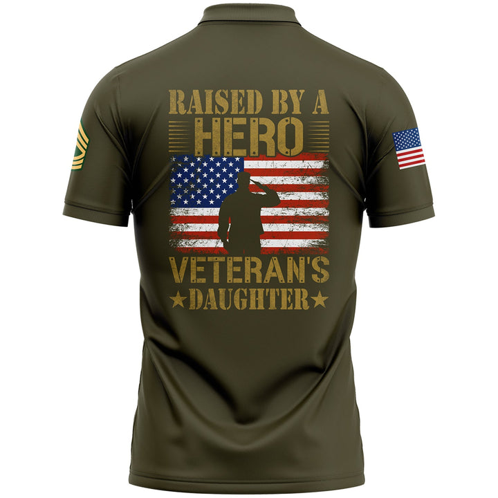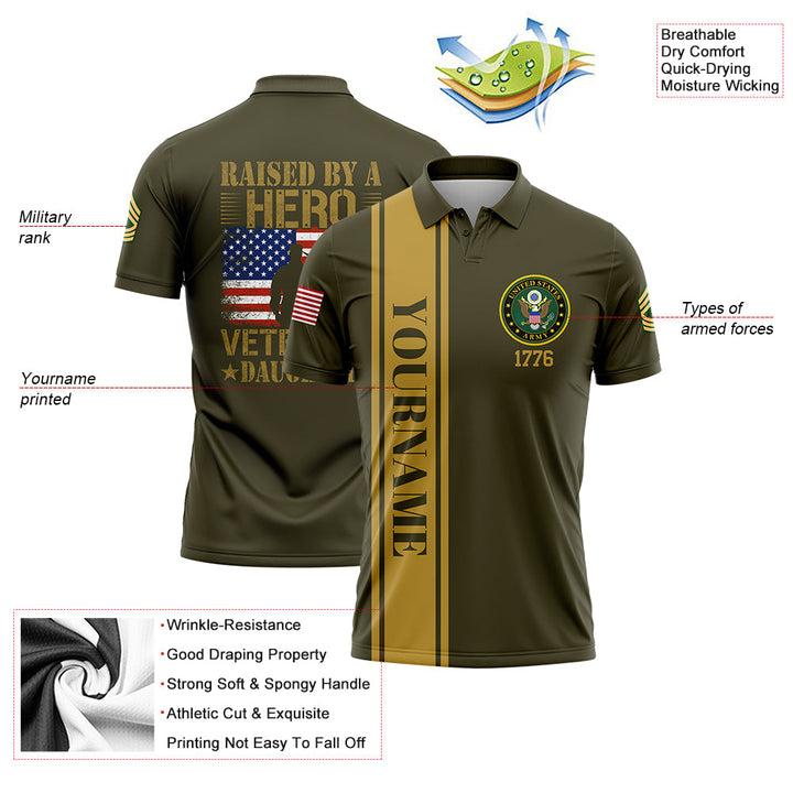 Custom Olive Raised By A Hero 1776 Flag U.S Army Military Rank Name Veterans Day Golf Polo Shirt | Father's Day Gifts