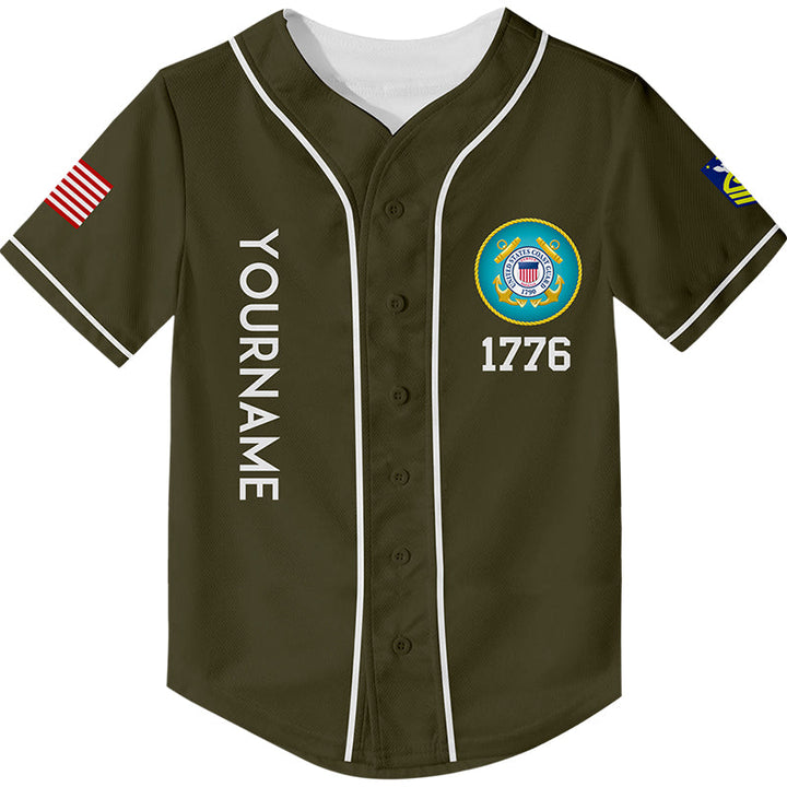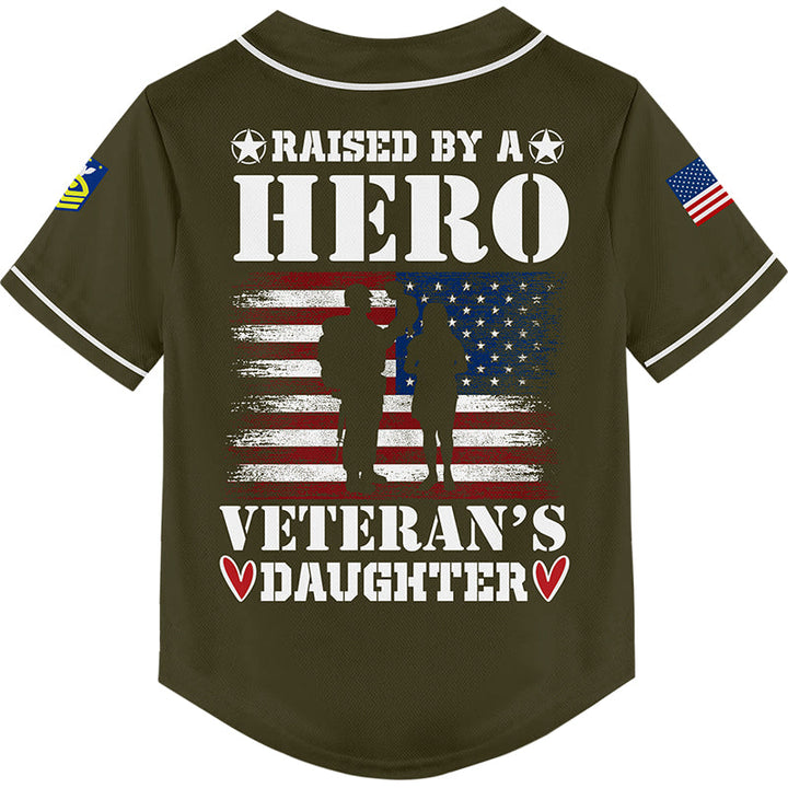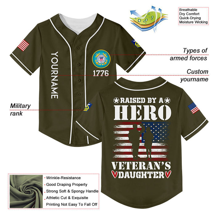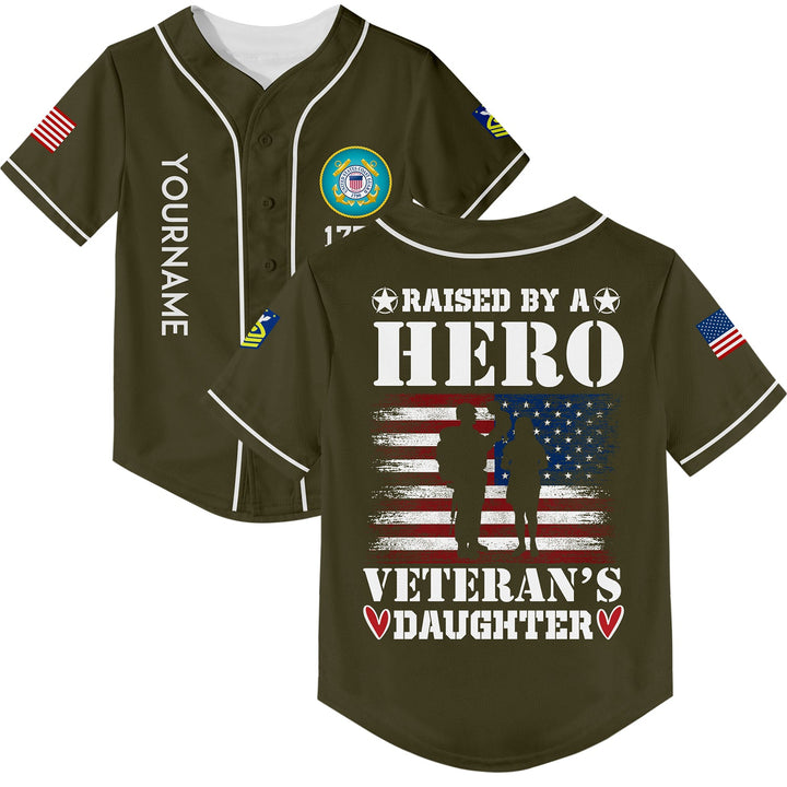 Custom Olive Raised By A Hero Veteran's Daughter 1776 Flag U.S Coast Guard Military Rank Name Veterans Day Baseball Jersey | Father's Day Gifts