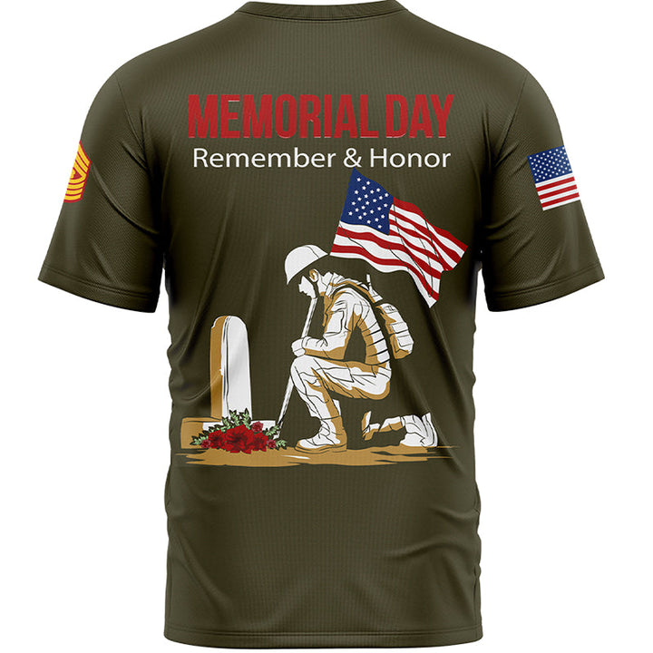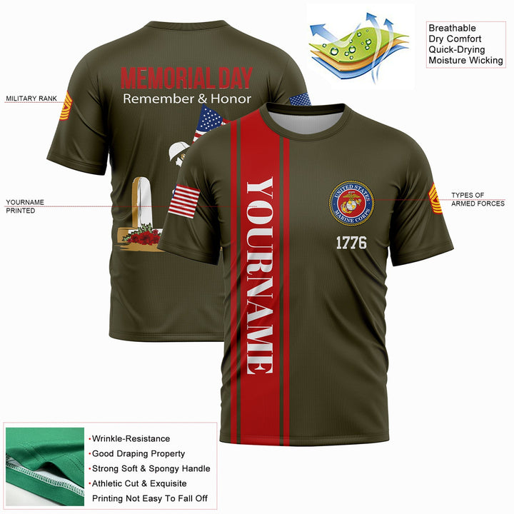 Custom Olive Remember Honor 1776 American Flag U.S Marine Corps Military Rank Name Memorial Day T-Shirt